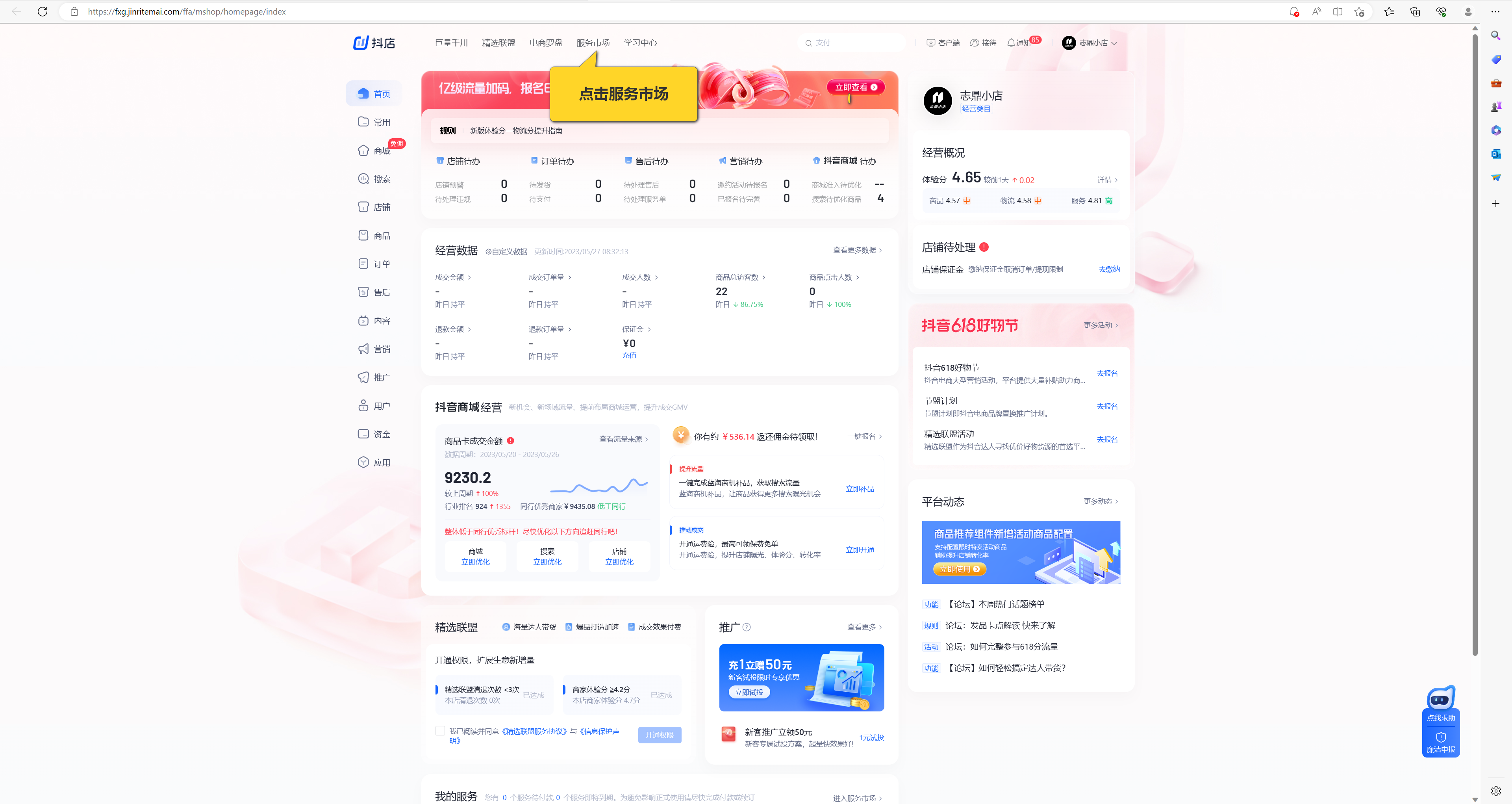 知识重点:绑定的店铺,需要先在服务市场切换店铺登录