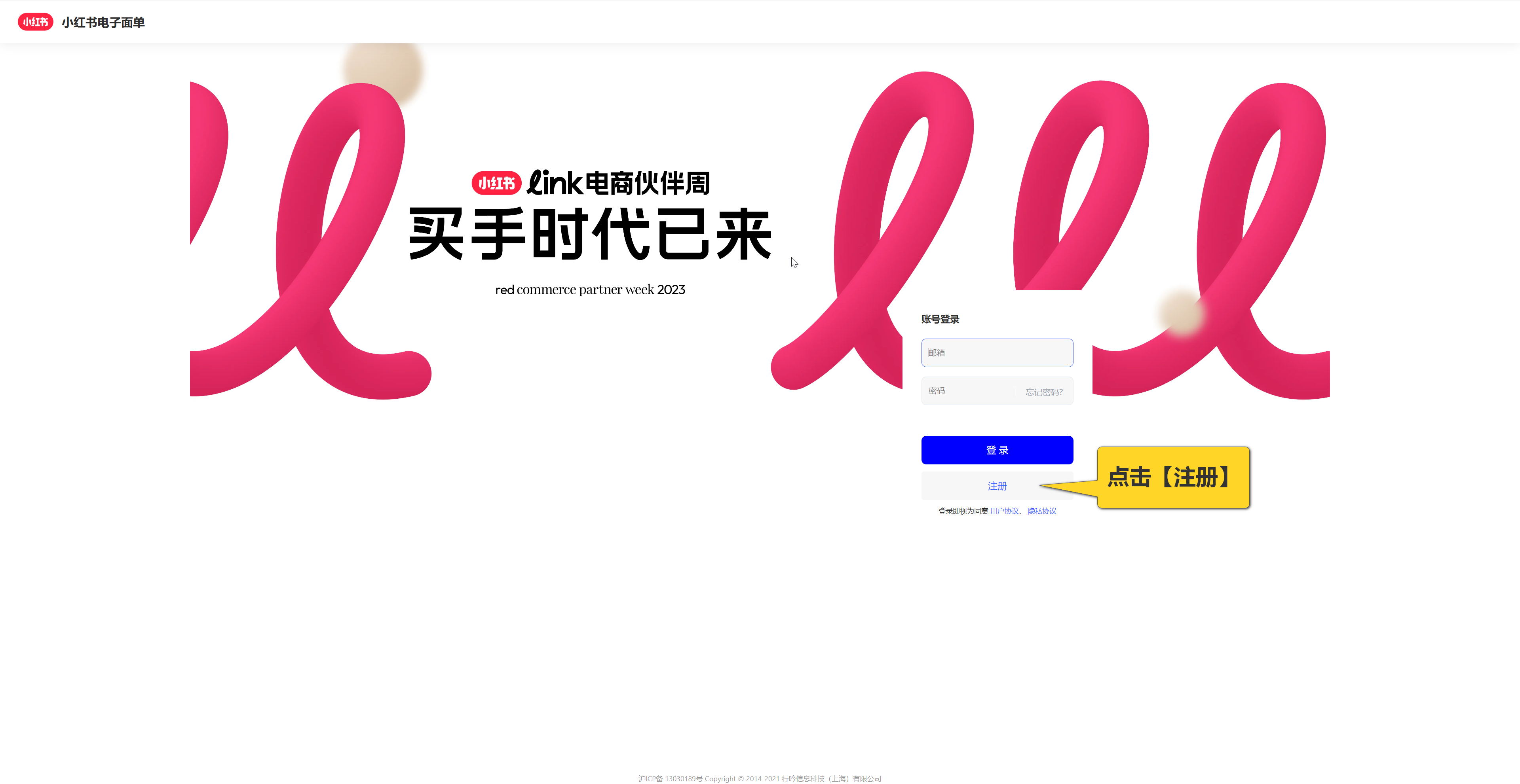 1、点击注册登录网址:https://ebill.xiaohongshu.com/