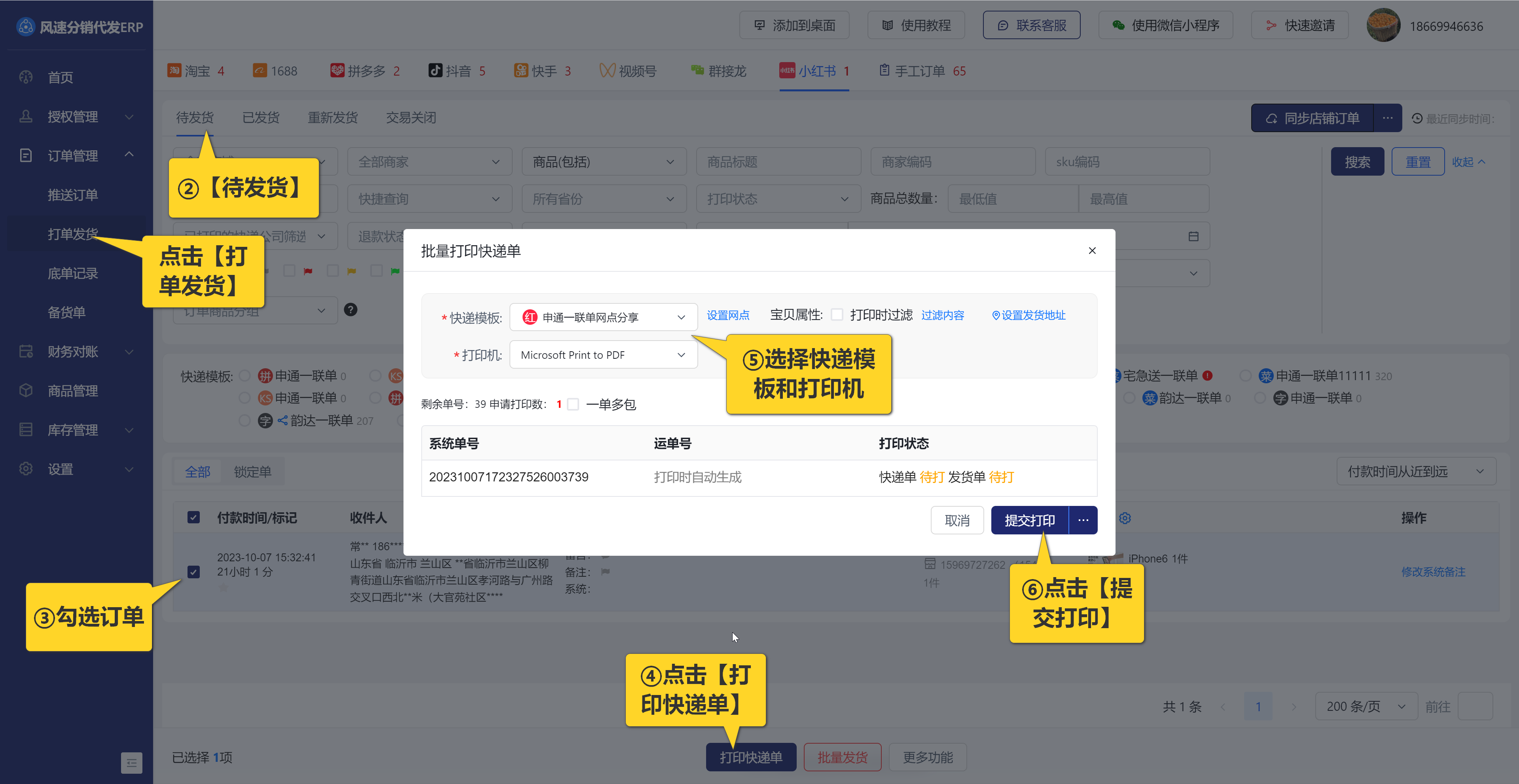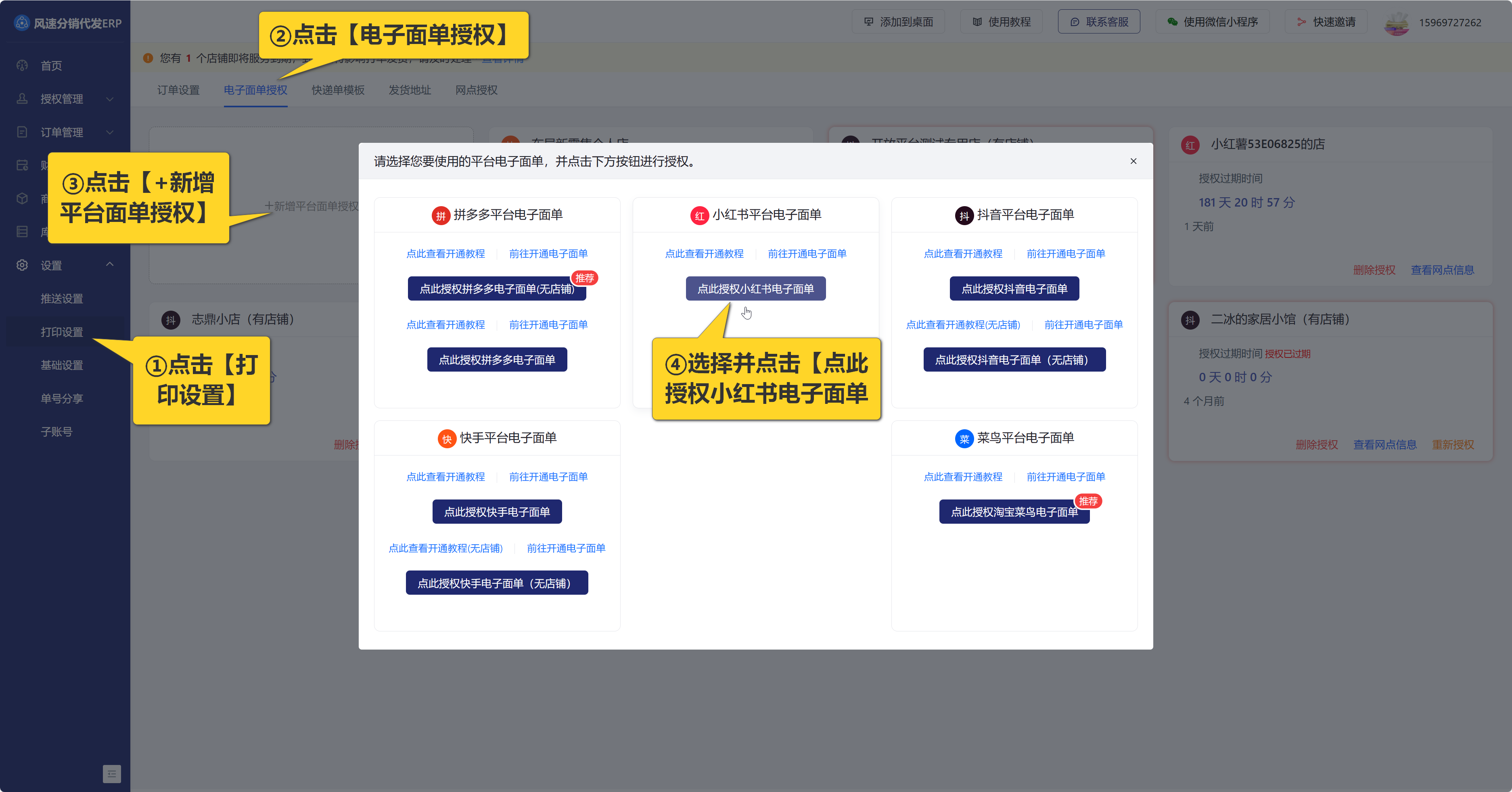 1.【风速分销代发】授权无店铺小红书电子面单
