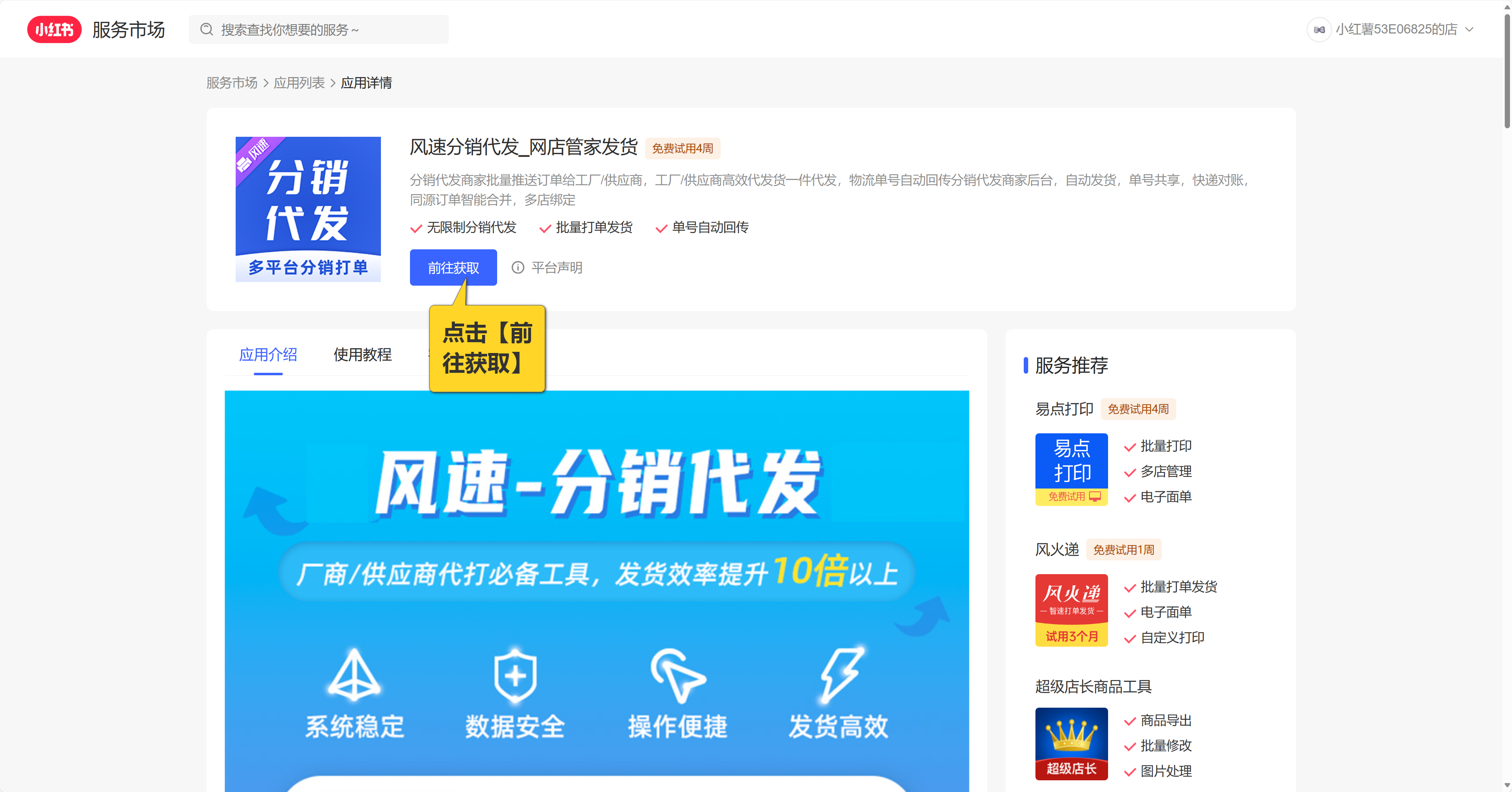 2.跳转到订购风速分销代发,点击前往获取