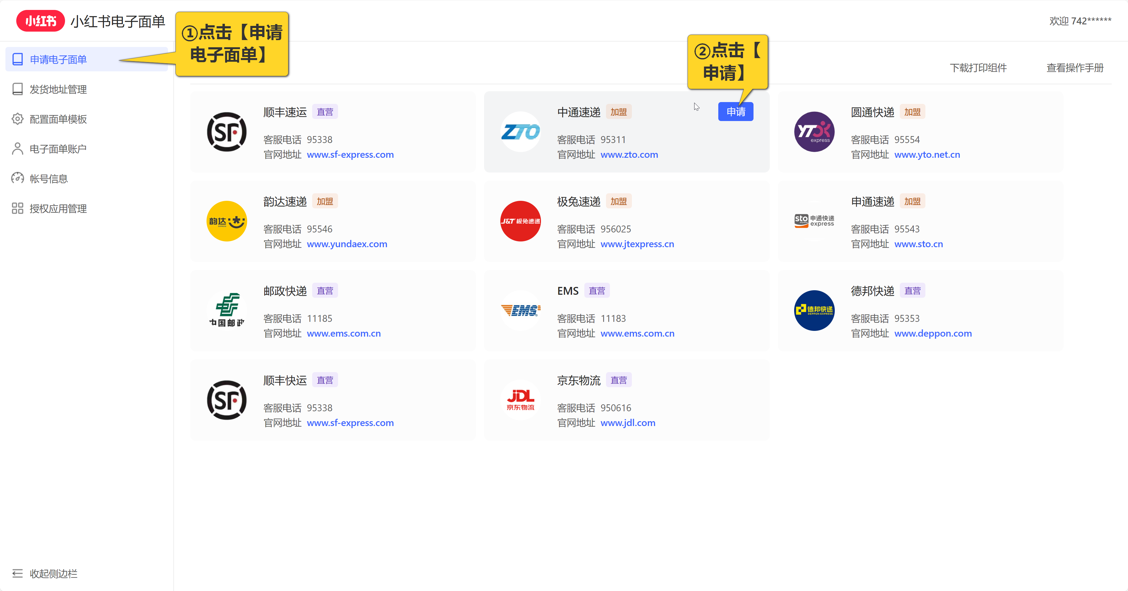 2.申请快递电子面单