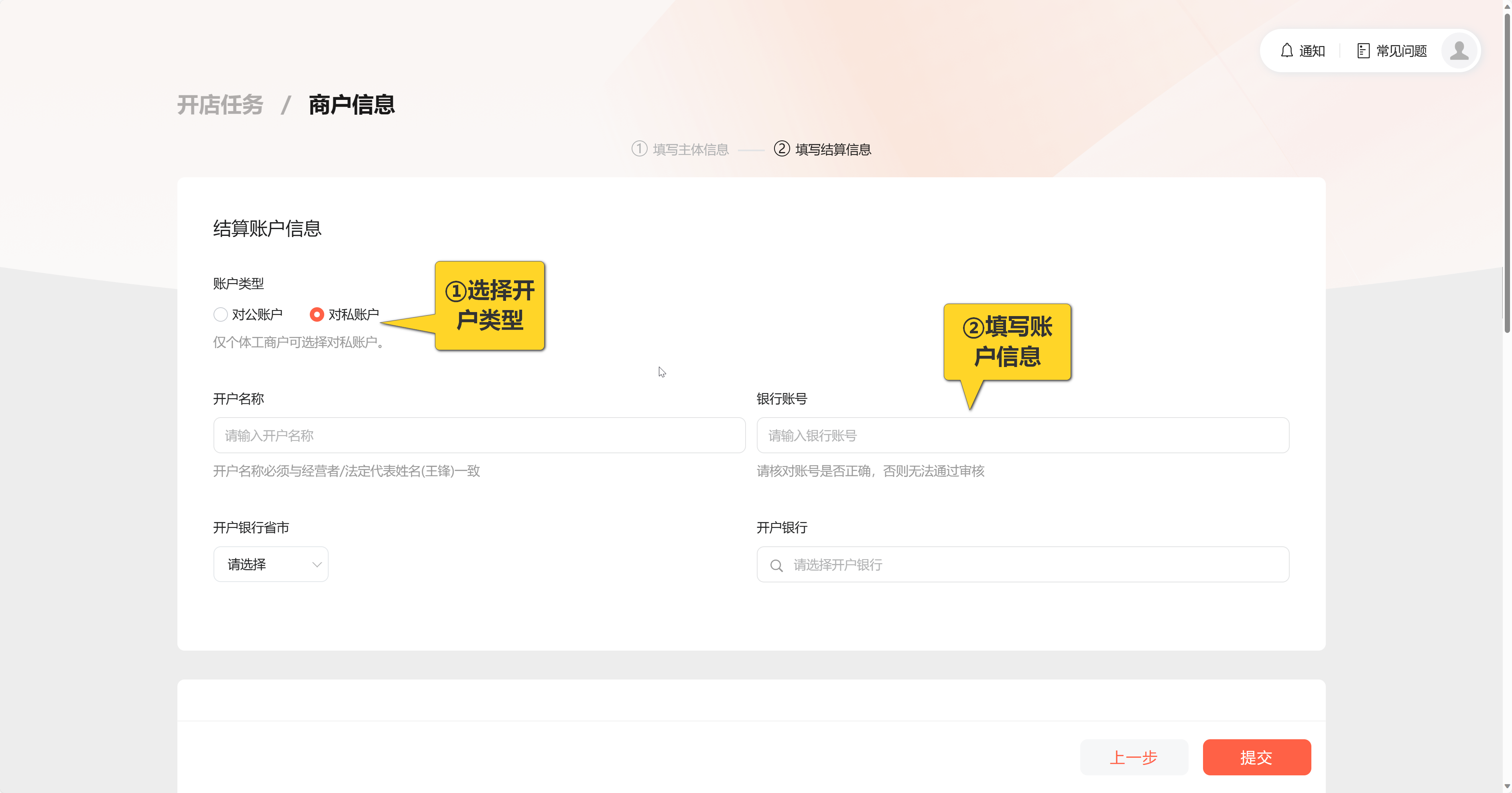 步骤4:结算账户信息