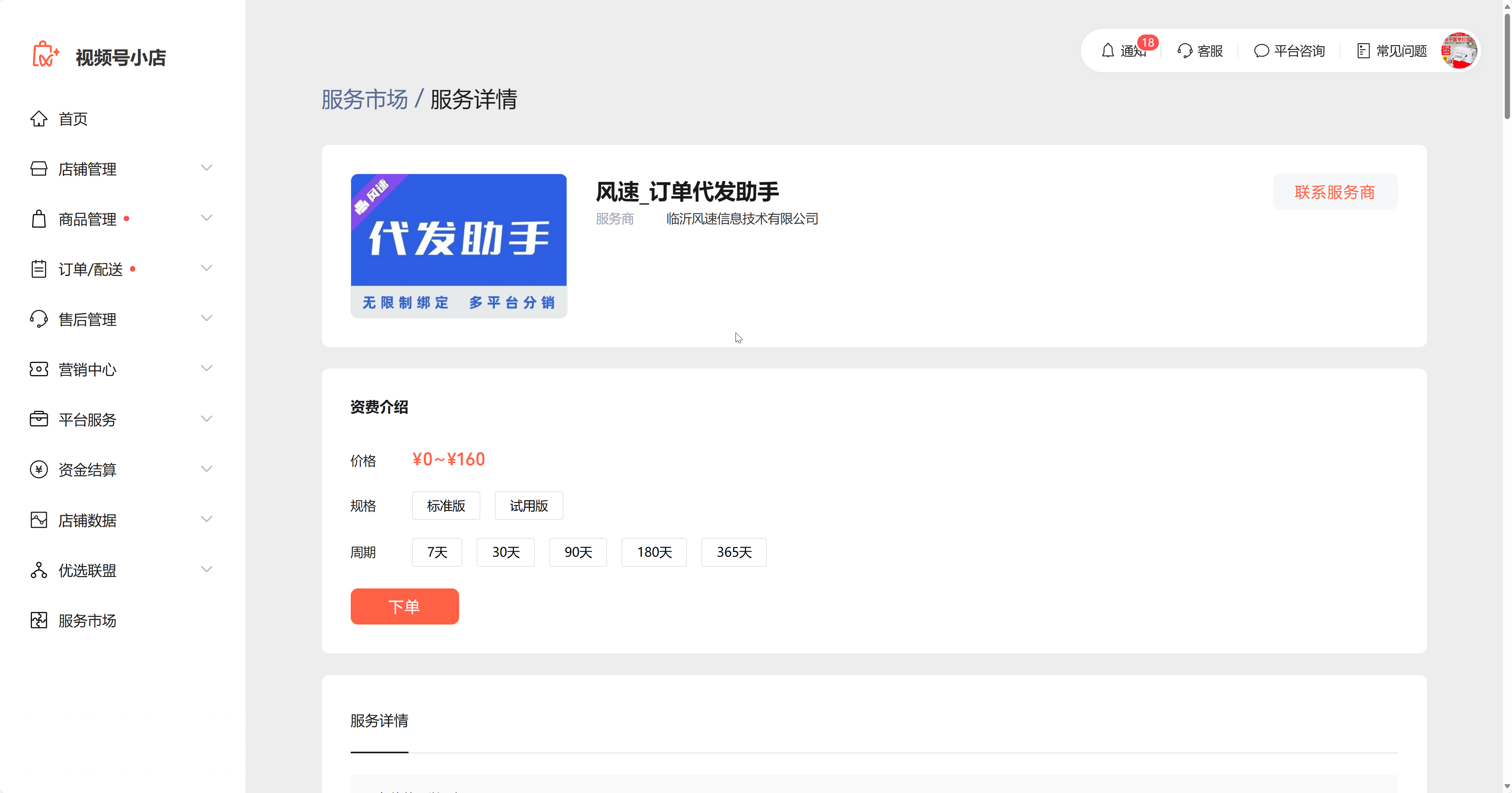 1.点击下方链接订购风速分销代发(视频号服务市场里搜索订购风速-订单代发助手)