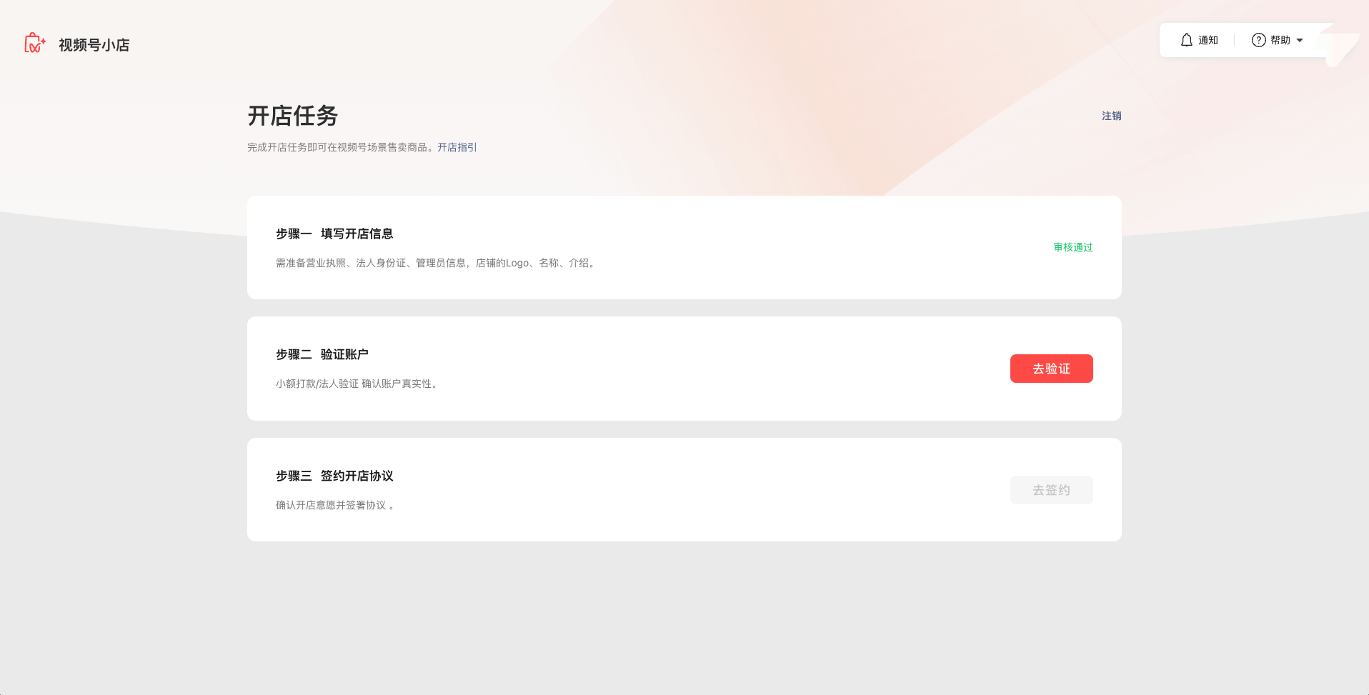 【填写开店信息】审核通过后,才可进行步骤二