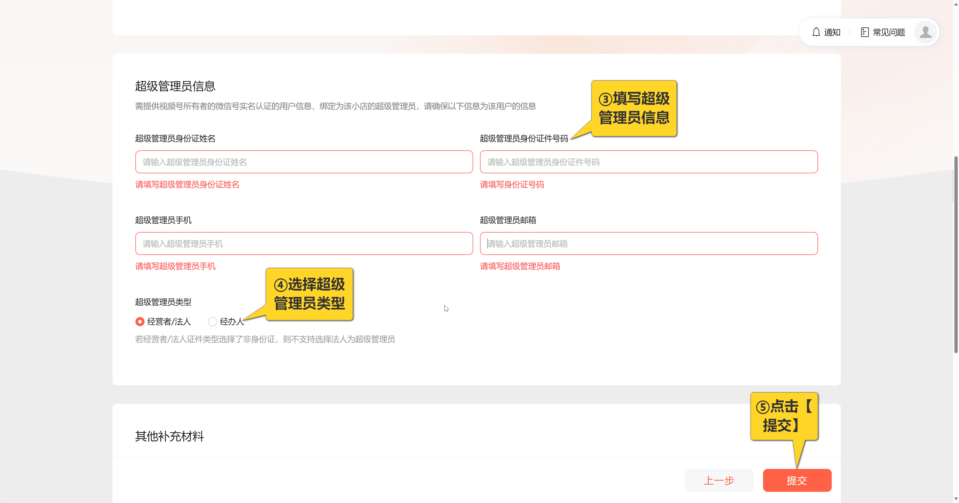 步骤3:填写经营者/法人身份证信息