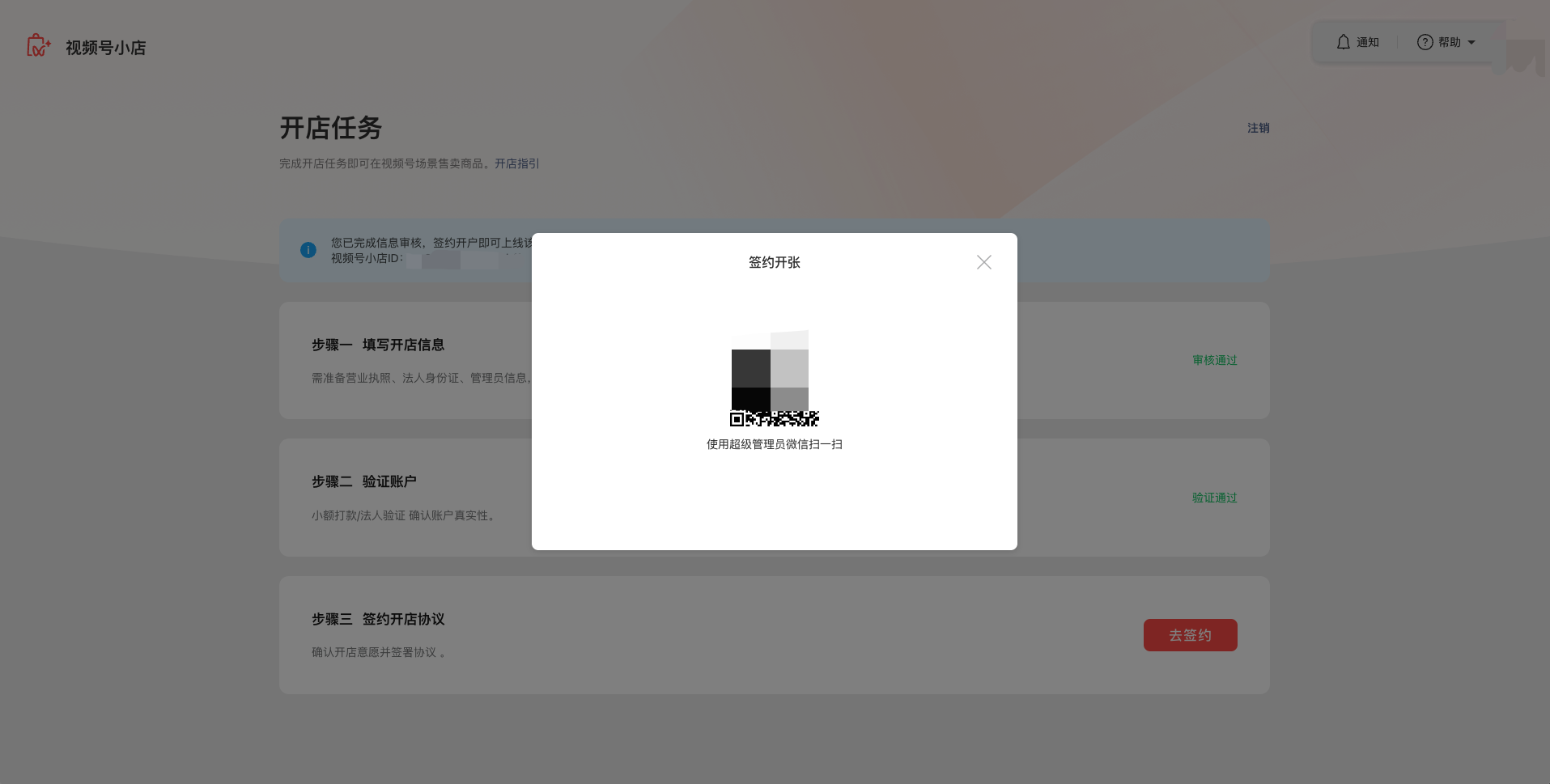 · 使用超级管理员微信进行扫码签约。